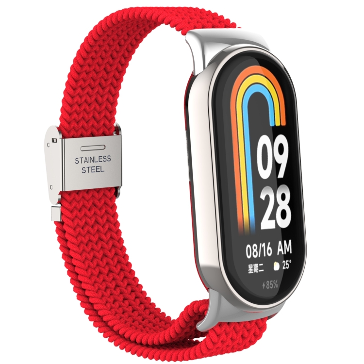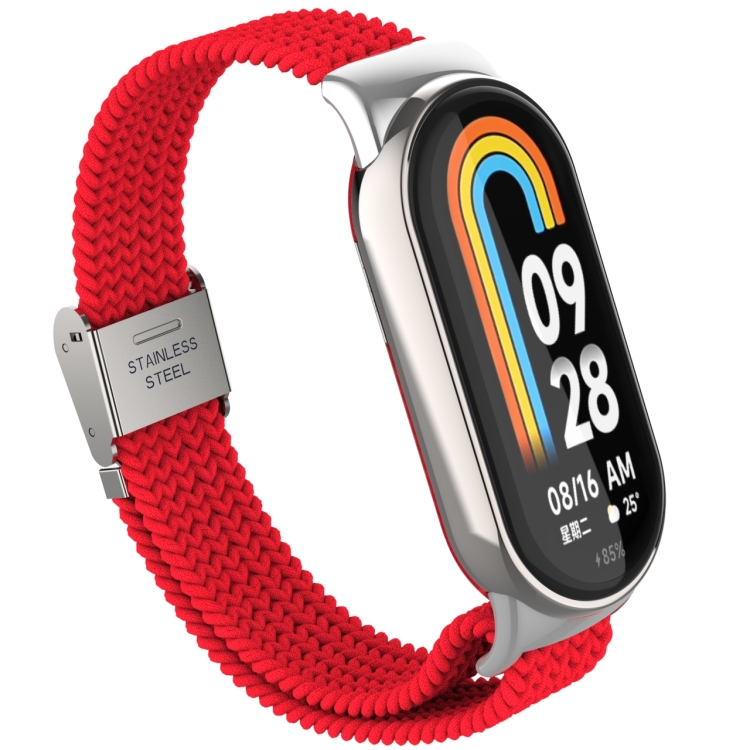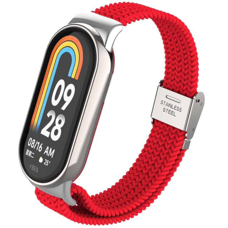 Correa de Reloj para Xiaomi Mi Band 8 Metal Head con Hebilla de Acero y Nailon Ajustable (Rojo)