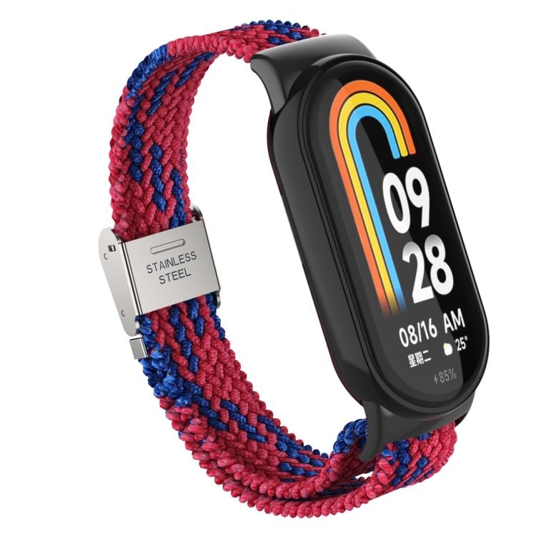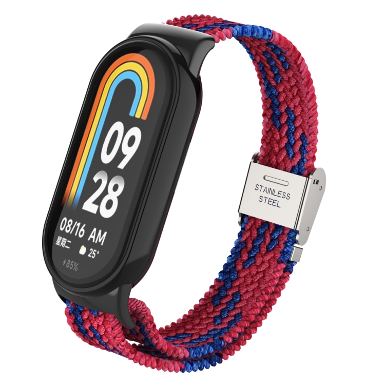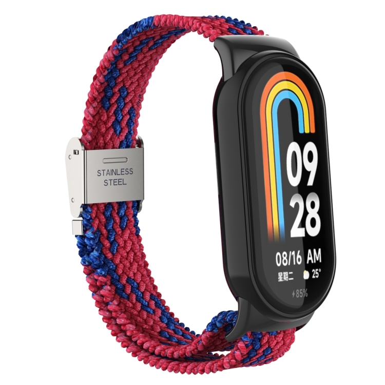 Correa para Xiaomi Mi Band 8 Metal Head con Hebilla de Acero y Nailon Ajustable (Rojo Azul)