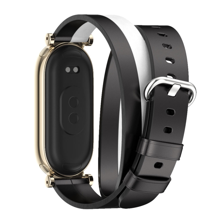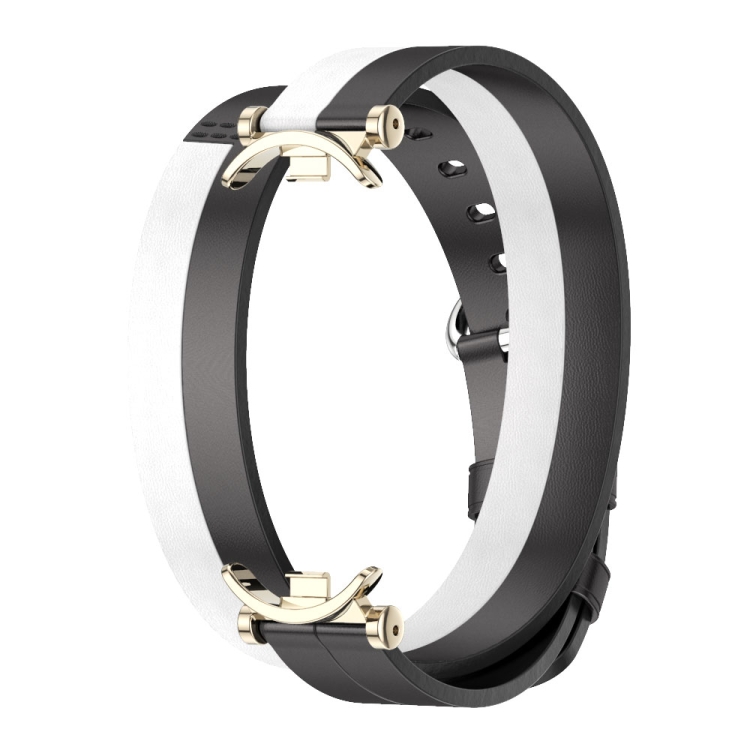 Correa de Cuero Doble Bucle para Xiaomi Mi Band 8 Mijobs Gt4 (Negro Blanco Dorado Claro)