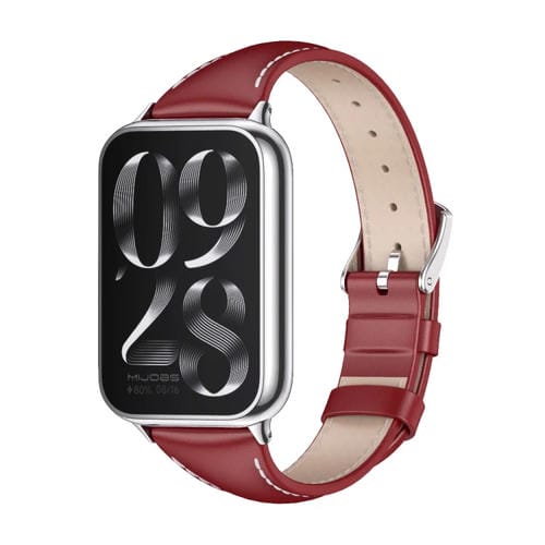 Correa de Reloj para Xiaomi Mi Band 8 Pro Mijobs Cuero Genuino Delgada (Rojo Plateado)