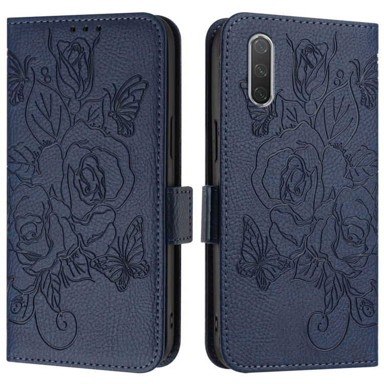Para Xiaomi Mi Cc9E / Mi A3 Funda de Teléfono de Cuero Antirrobo Rfid con Relieve Rosa (Azul Oscuro)