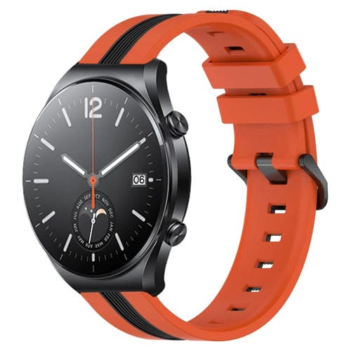 Banda de Reloj Xiaomi Mi Watch S1 22mm Silicona Dos Colores Vertical (Naranja + Negro)