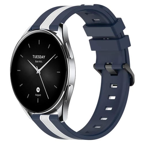 Banda de Reloj de Silicona para Xiaomi Mi Watch S2 42mm 22mm Dos Colores Vertical (Azul + Blanco)