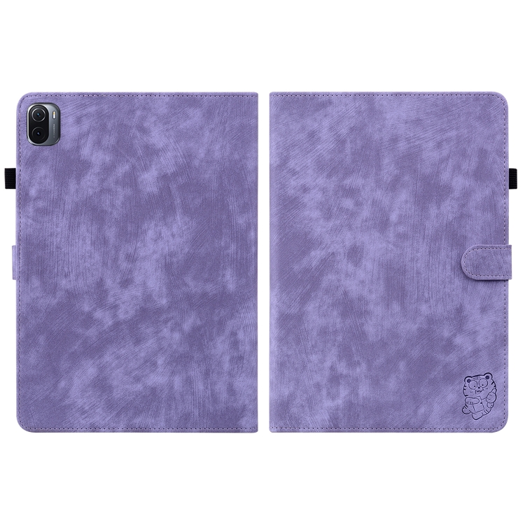 Para Xiaomi Pad 5/Pad 5 Pro Tiger Pattern Pu Tablet Case con Función Sleep / Wake-Up (Púrpura)