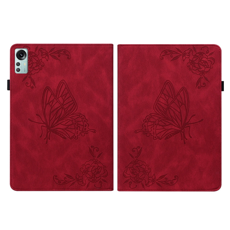 Para Xiaomi Pad 5 Pro 12.4 Funda para Tableta de Cuero con Relieve de Flor de Mariposa (Rojo)