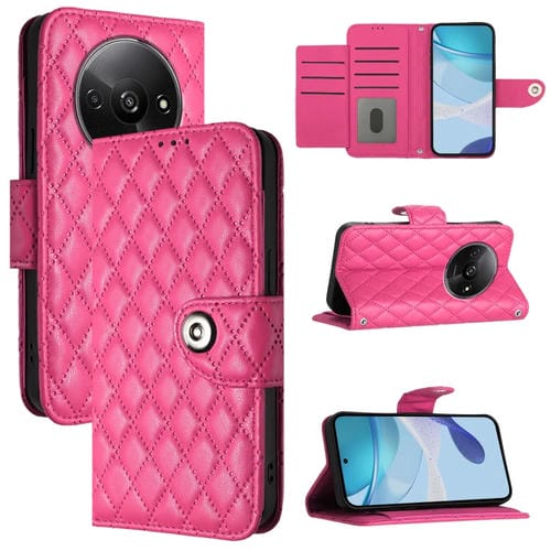 Para Xiaomi Poco C61 Funda para Teléfono de Cuero con Tapa con Textura Rómbica y Cordón (Rojo Rosa)