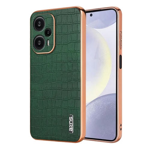 Para Xiaomi Poco F5 Azns Marco Galvanizado Textura de Cocodrilo Funda para Teléfono de Cobertura Total (Verde)