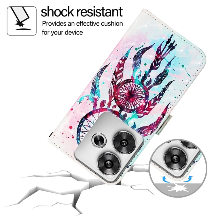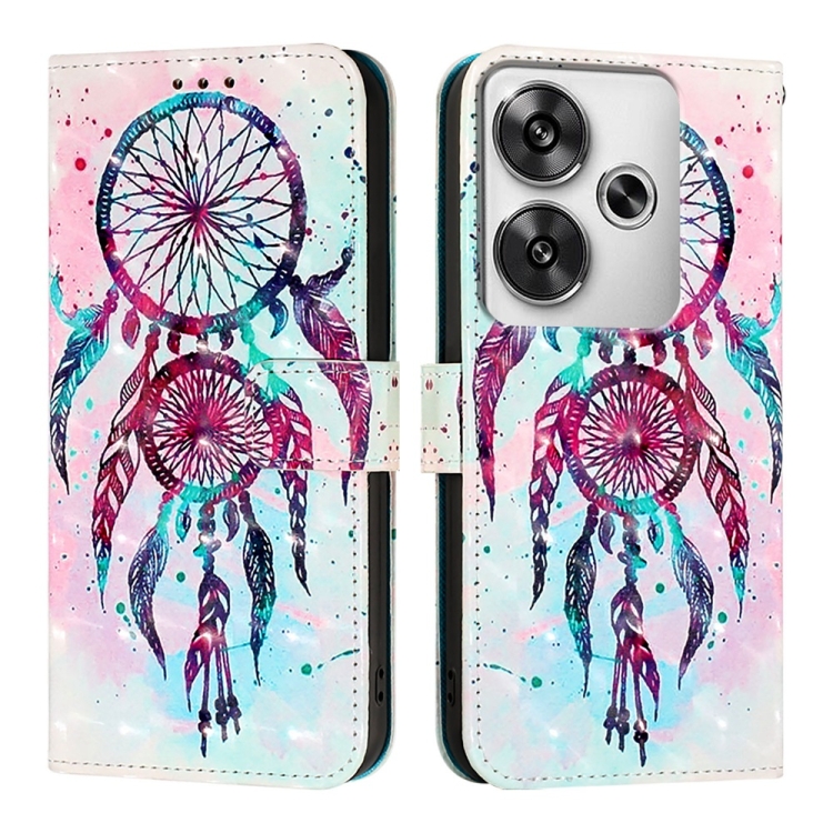 Para Xiaomi Poco F6 5G Pintura 3D Funda de Cuero con Tapa Horizontal para Teléfono (Campanas de Viento con Forma de Gota de Color)