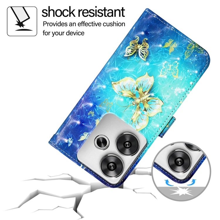 Para Xiaomi Poco F6 5G Pintura 3D Funda de Cuero con Tapa Horizontal para Teléfono (Mariposa Dorada)