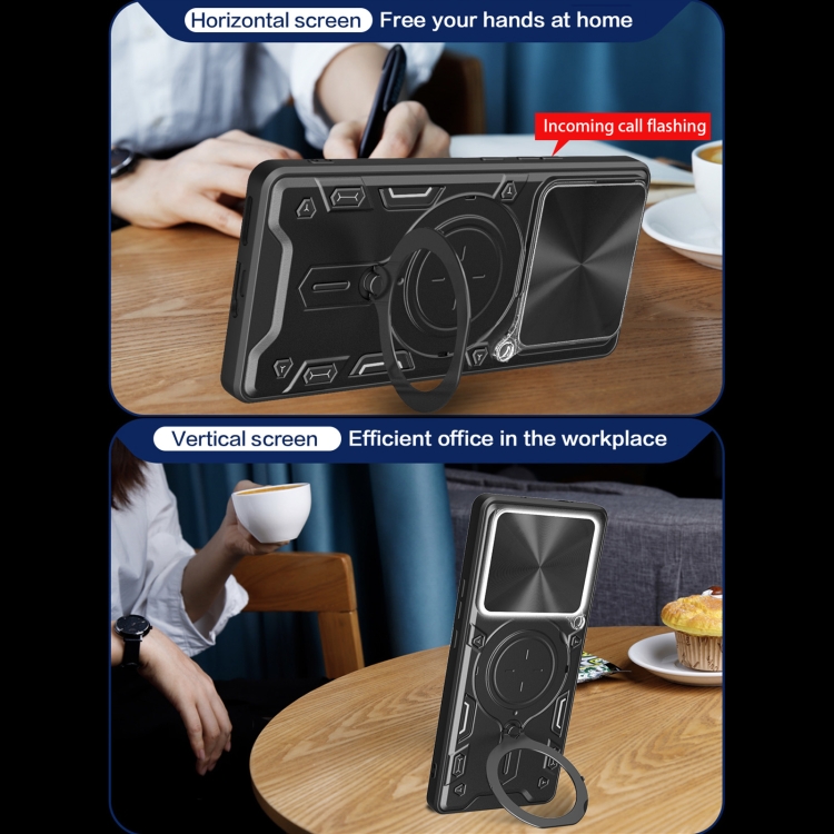 Para Xiaomi Poco F6 Cd Texture Sliding Camshield Funda para Teléfono con Soporte Magnético (Rojo)
