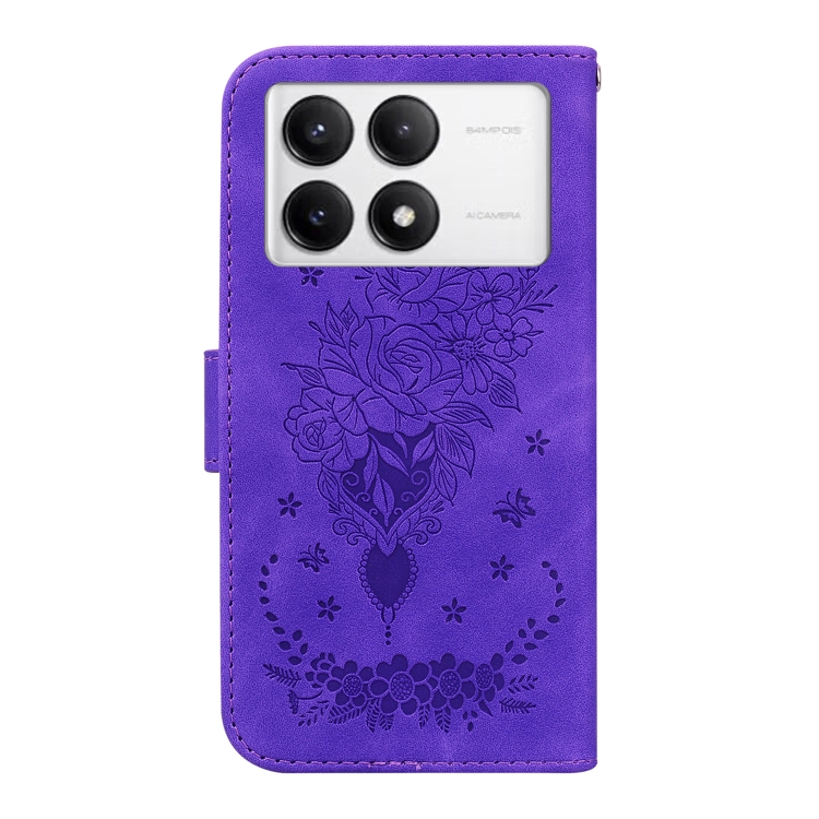 Para Xiaomi Poco F6 Pro Butterfly Rose Funda de Cuero para Teléfono En Relieve (Púrpura)