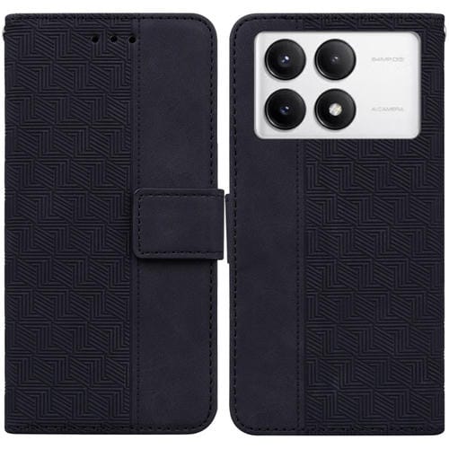 Para Xiaomi Poco F6 Pro Funda de Teléfono de Cuero con Relieve Geométrico (Negro)