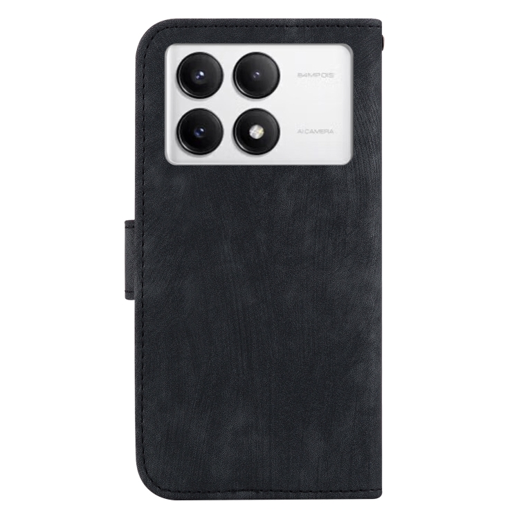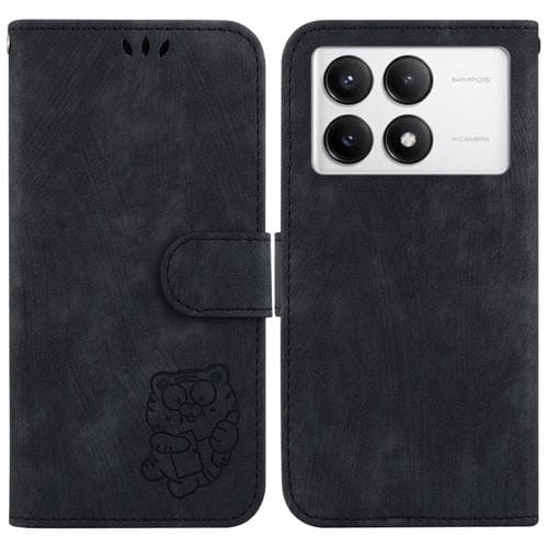 Para Xiaomi Poco F6 Pro Little Tiger Funda de Cuero para Teléfono En Relieve (Negro)