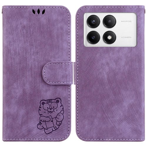 Para Xiaomi Poco F6 Pro Little Tiger Funda de Cuero para Teléfono En Relieve (Púrpura)