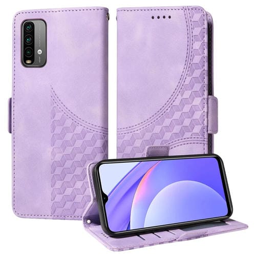 Para Xiaomi Poco M3 Funda para Teléfono de Cuero Estrellado con Rombos En Relieve (Púrpura)