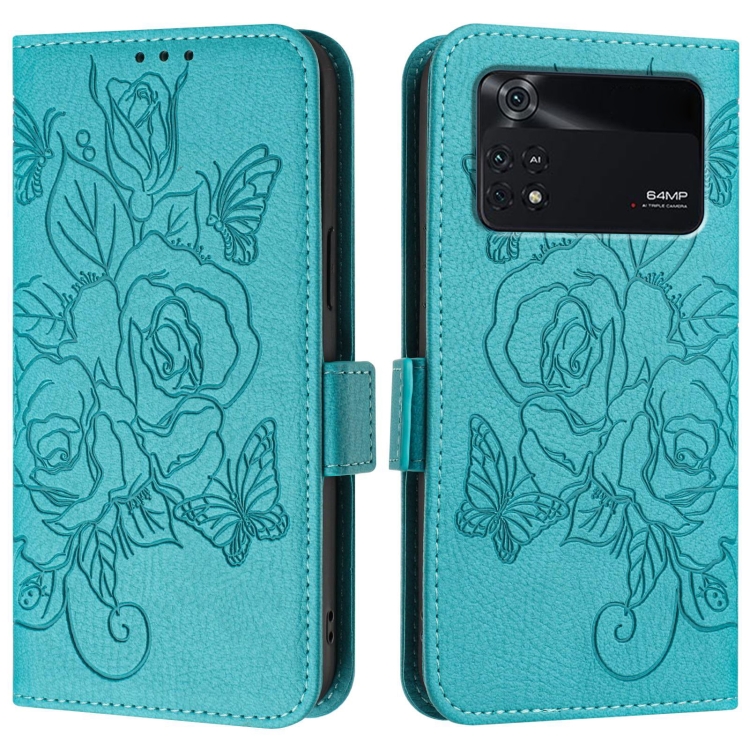 Para Xiaomi Poco M4 Pro 4G Funda de Teléfono de Cuero Antirrobo Rfid con Relieve Rosa (Azul Claro)