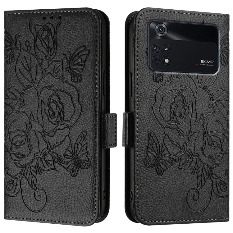 Para Xiaomi Poco M4 Pro 4G Funda de Teléfono de Cuero Antirrobo Rfid con Relieve Rosa (Negro)