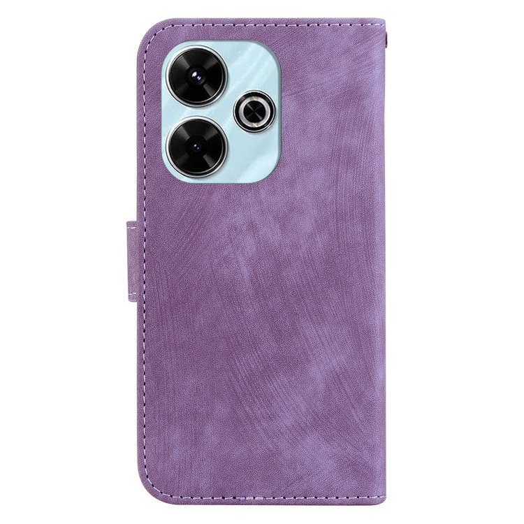 Para Xiaomi Poco M6 4G Little Tiger Funda de Cuero para Teléfono En Relieve (Púrpura)