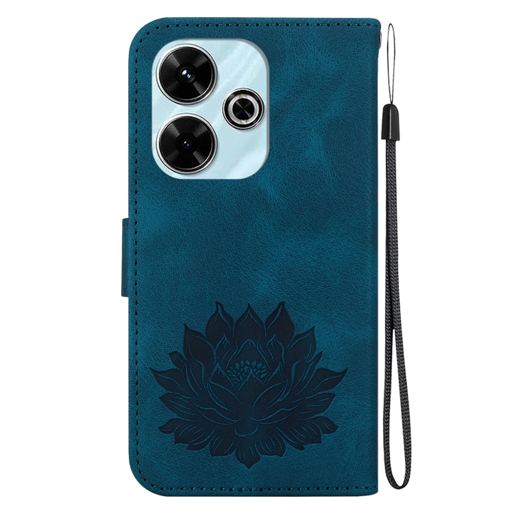 Para Xiaomi Poco M6 4G Lotus Funda de Cuero En Relieve para Teléfono (Azul Oscuro)