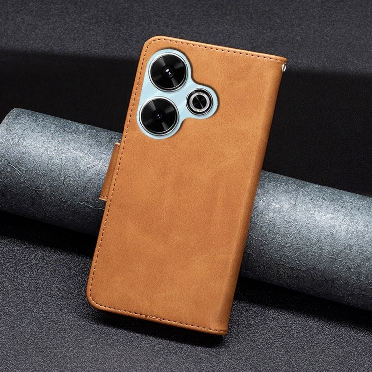 Para Xiaomi Poco M6 4G / Redmi 13 4G Funda para Teléfono de Cuero con Tapa de Color Puro con Textura de Piel de Cordero (Amarillo)