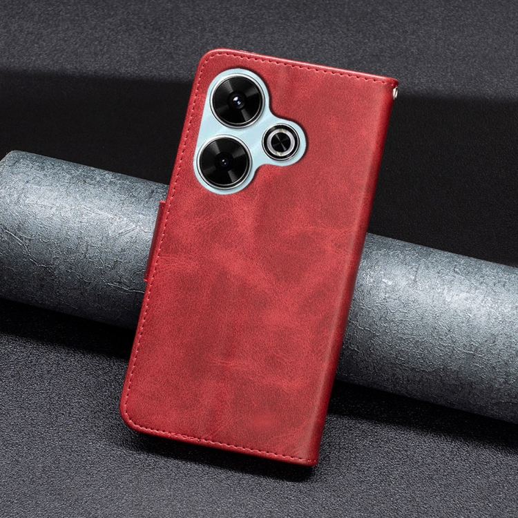 Para Xiaomi Poco M6 4G / Redmi 13 4G Funda para Teléfono de Cuero con Tapa de Color Puro con Textura de Piel de Cordero (Rojo)
