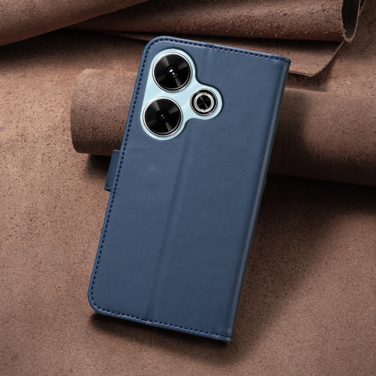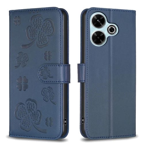 Para Xiaomi Poco M6 4G / Redmi 13 4G Funda para Teléfono de Cuero En Relieve de Cuatro Hojas (Azul)