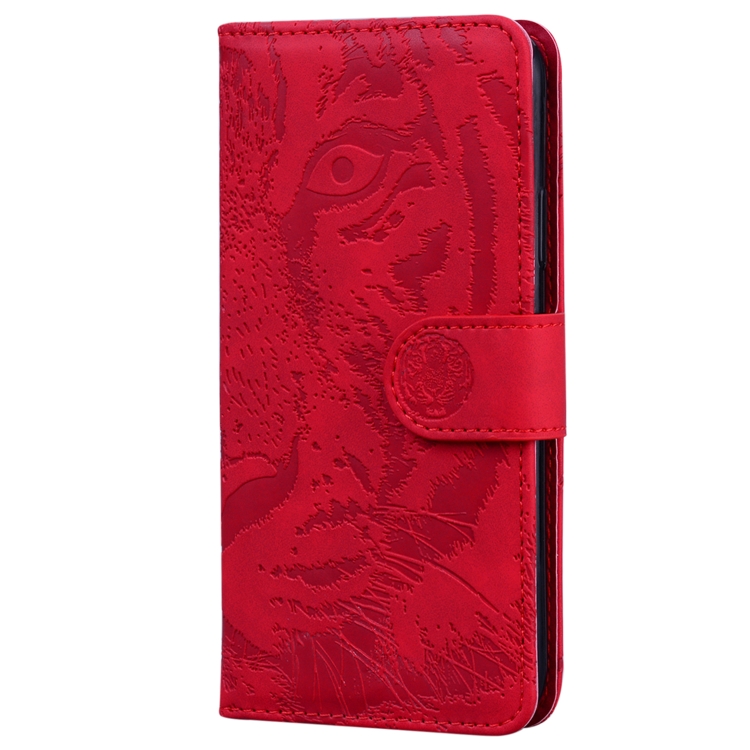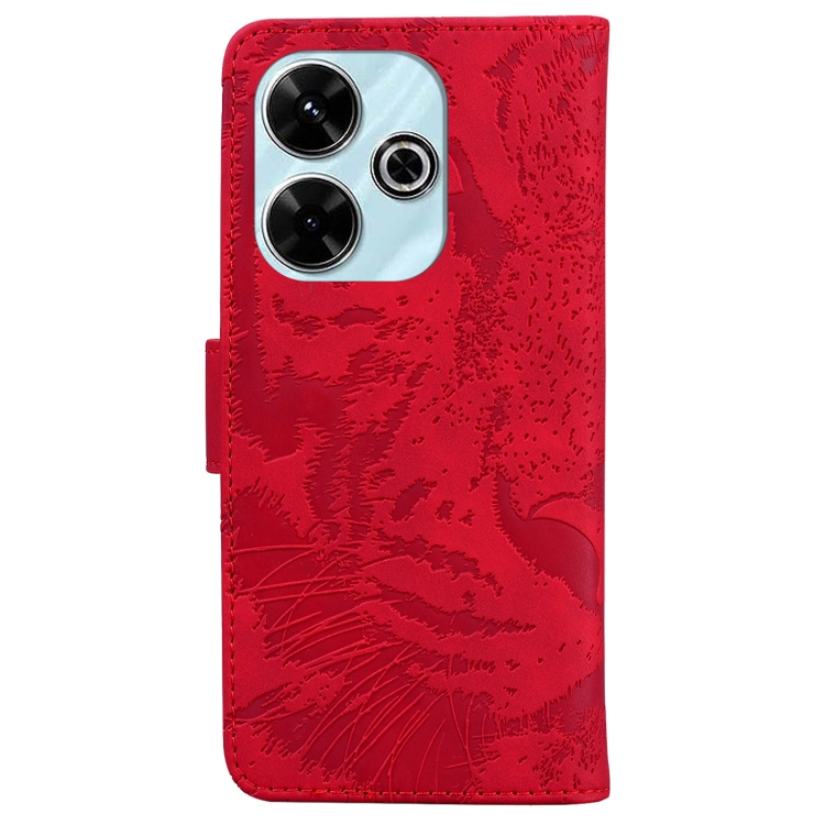 Para Xiaomi Poco M6 4G Tiger Embossed Pattern Funda de Cuero con Tapa para Teléfono (Rojo)