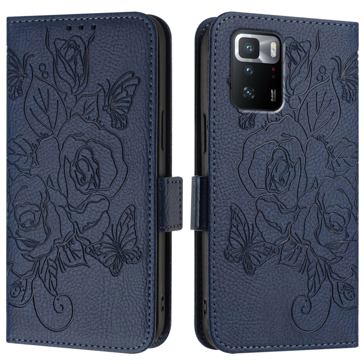 Para Xiaomi Poco X3 Gt Funda de Teléfono de Cuero Antirrobo Rfid con Relieve Rosa (Azul Oscuro)
