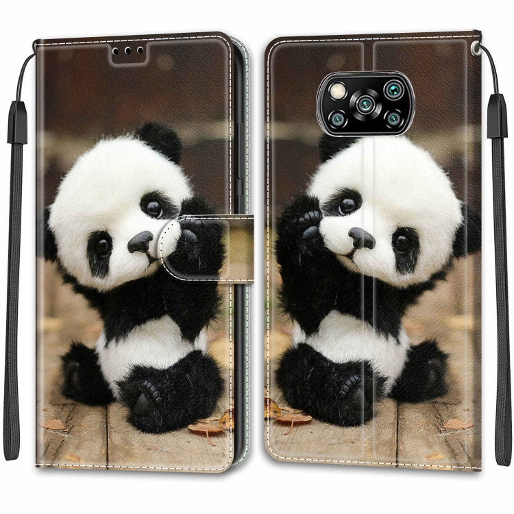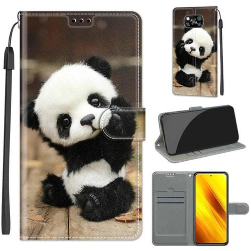 Para Xiaomi Poco X3 Nfc Tensión de Color Dibujo de Color Magnético Cierre de Cuero Horizontal Flip Pu Funda con Soporte y Ranuras de Tarjetas (C18 Placa de Madera Panda)