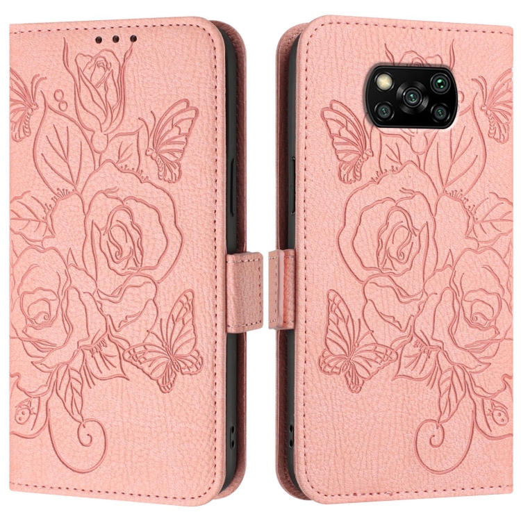 Para Xiaomi Poco X3 / X3 Nfc / X3 Pro Funda de Cuero Antirrobo Rfid con Relieve Rosa (Rosa)