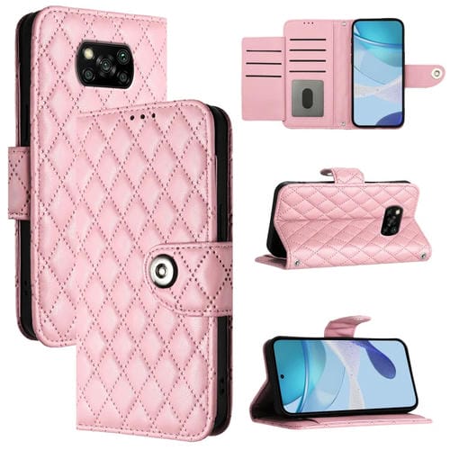 Para Xiaomi Poco X3 / X3 Nfc / X3 Pro Funda de Cuero con Tapa con Textura Rómbica y Cordón (Rosa)