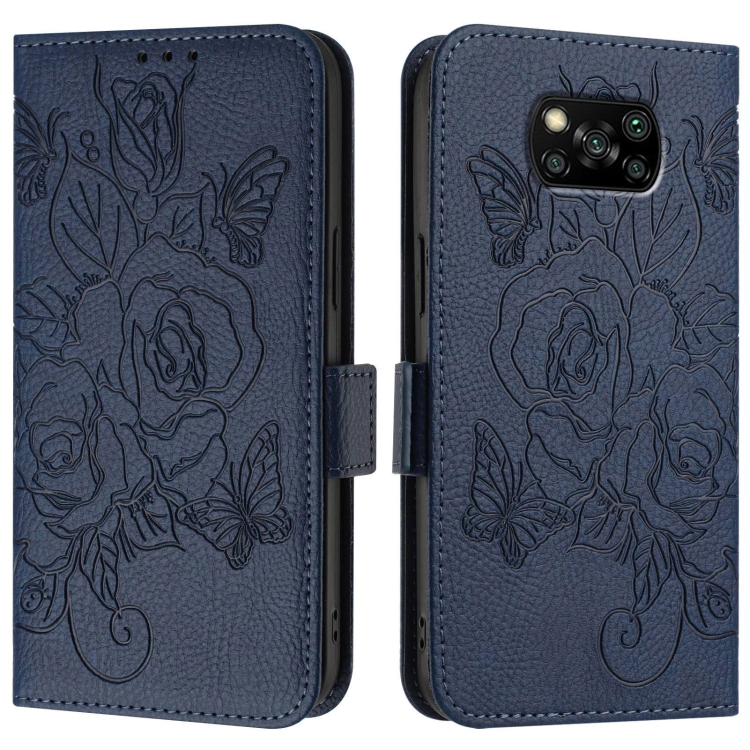 Para Xiaomi Poco X3 / X3 Nfc / X3 Pro Funda de Teléfono de Cuero Antirrobo Rfid con Relieve Rosa (Azul Oscuro)