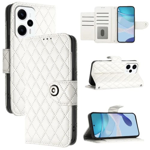 Para Xiaomi Poco X4 Gt Funda de Cuero con Tapa con Textura Rómbica y Cordón (Blanco)