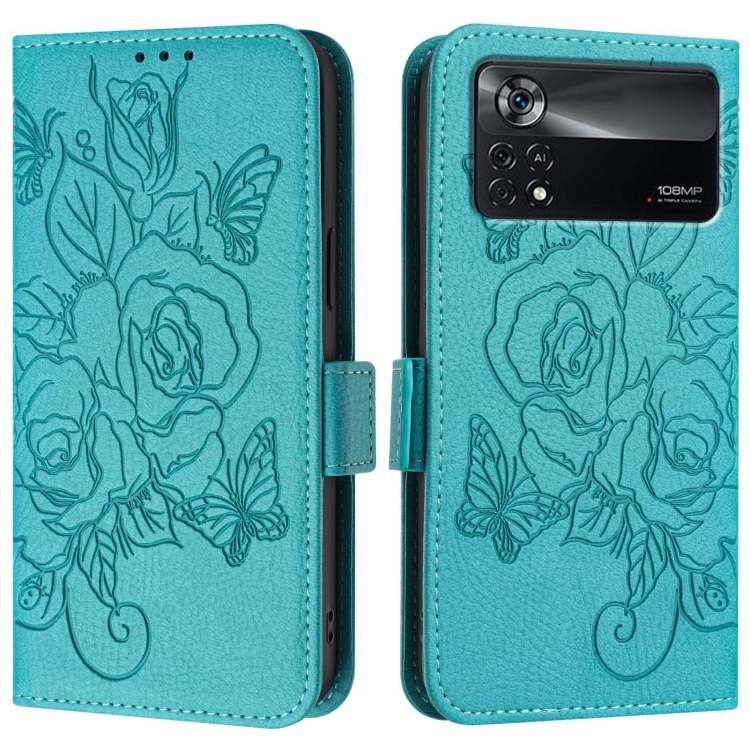 Para Xiaomi Poco X4 Pro 5G Funda para Teléfono de Cuero Antirrobo Rfid con Relieve Rosa (Azul Claro)