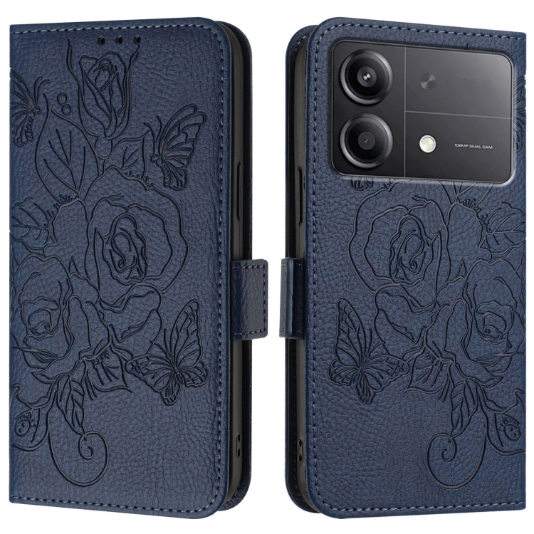 Para Xiaomi Poco X6 Neo 5G Funda para Teléfono de Cuero Antirrobo Rfid con Relieve Rosa (Azul Oscuro)