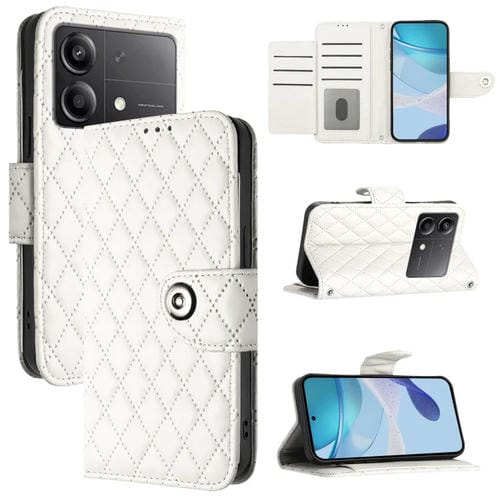 Para Xiaomi Poco X6 Neo Funda de Teléfono con Tapa de Cuero con Textura Rómbica y Cordón (Blanco)