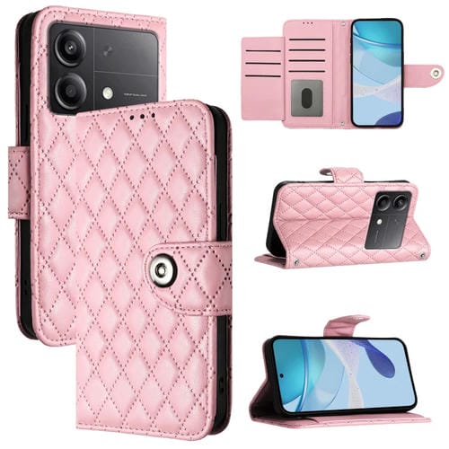 Para Xiaomi Poco X6 Neo Funda para Teléfono con Tapa de Cuero con Textura Rómbica y Cordón (Rosa)