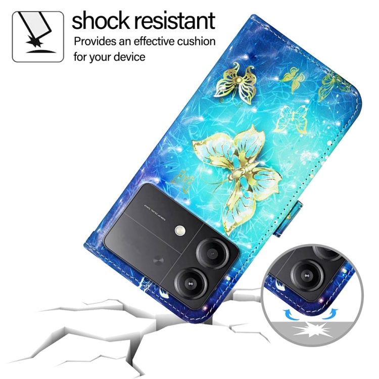 Para Xiaomi Poco X6 Neo Global 3D Painting Funda de Cuero con Tapa Horizontal para Teléfono (Mariposa Dorada)