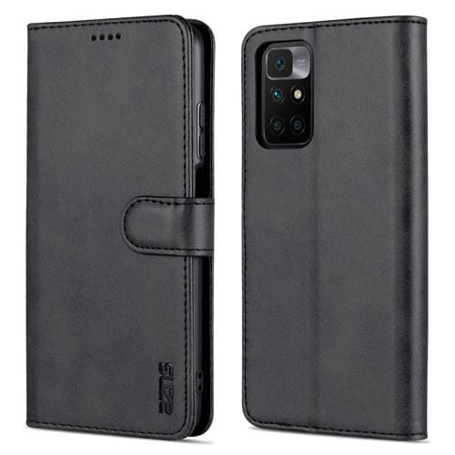 Para Xiaomi Redmi 10 Azns Siente la Piel con Textura de la Carne de Cuero Horizontal Flip Funda con Ranuras y Soporte para Tarjetas y Billetera (Negro)