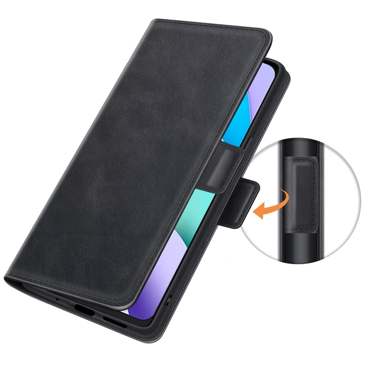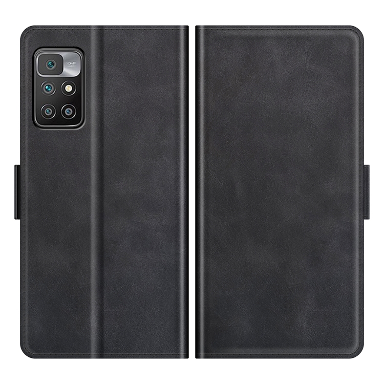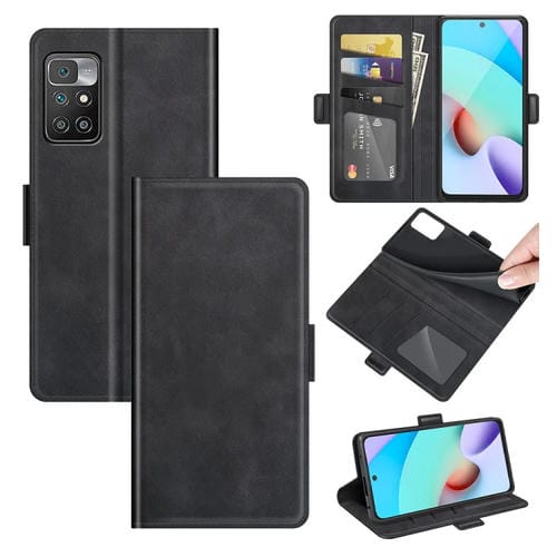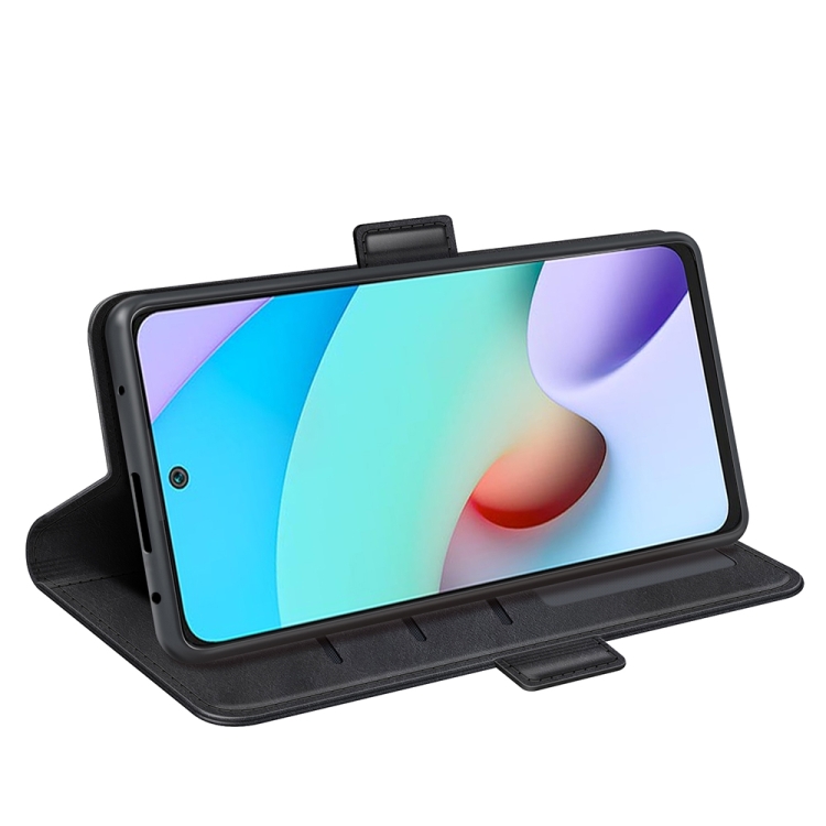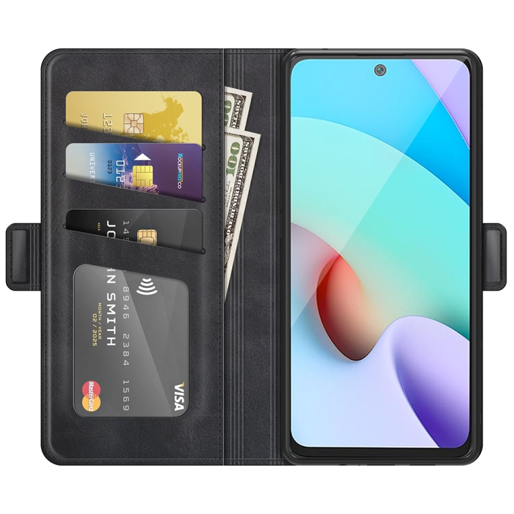 Para Xiaomi Redmi 10 Hebilla Magnética de Doble Lado Caja de Cuero Hebilla Horizontal con Soporte y Tragamonedas y Billetera (Negro)