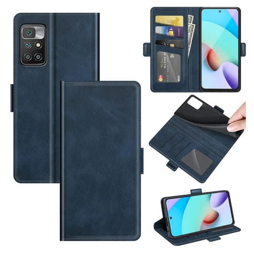 Para Xiaomi Redmi 10 Hebilla Magnética de Doble Lado Funda de Cuero Horizontal Flip con Soporte y Tragamonedas y Billetera (Azul Oscuro)