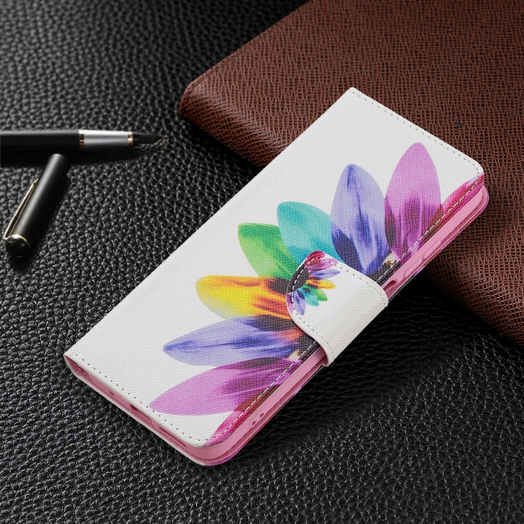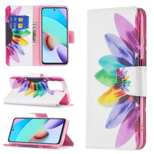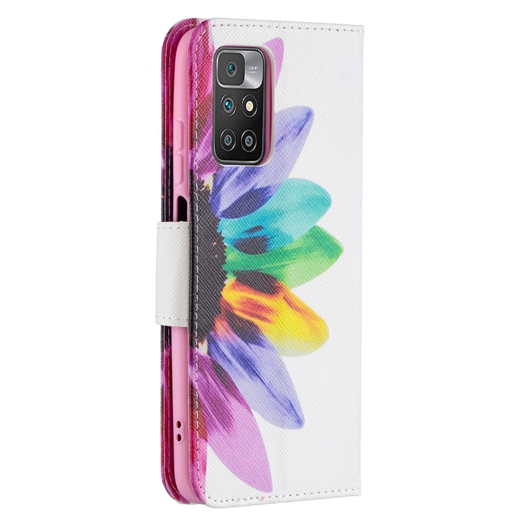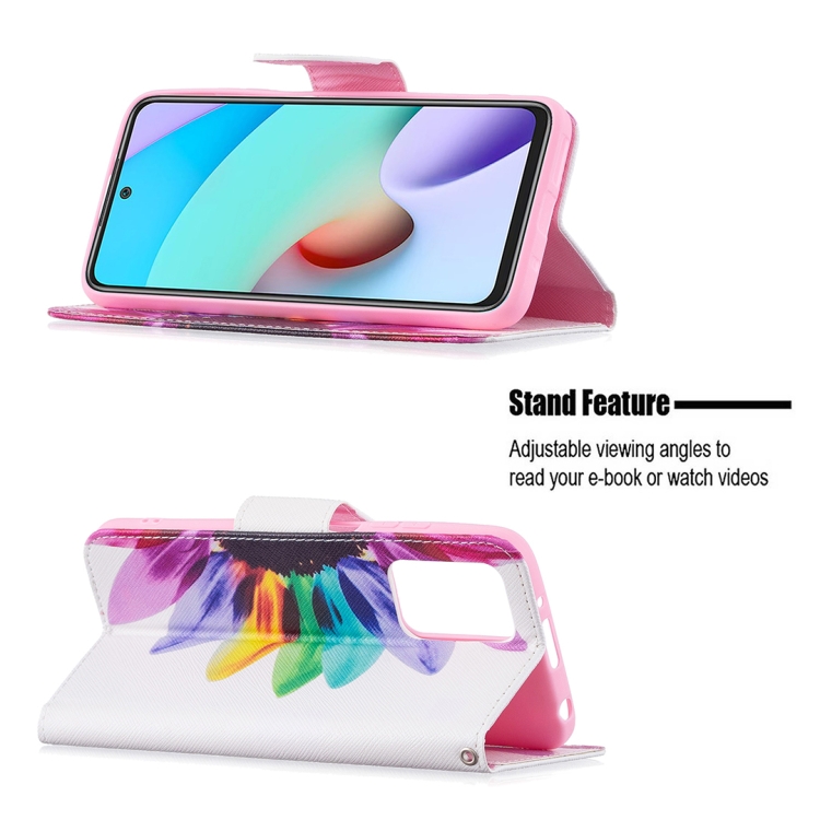Para Xiaomi Redmi 10 Patrón de Dibujo de Color Patrón de Dibujo Horizontal Funda de Cuero con Soporte y Tragamonedas y Billetera (Flor de Sol)