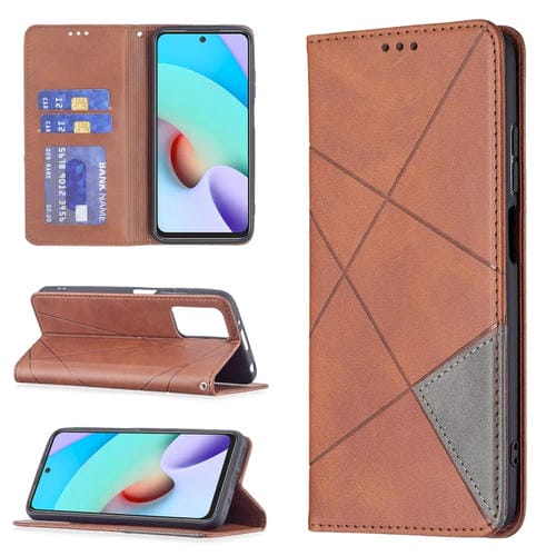 Para Xiaomi Redmi 10 Rhombus Texture Horizontal Flip Funda Magnética con Soporte y Ranuras de Tarjetas (Marrón)