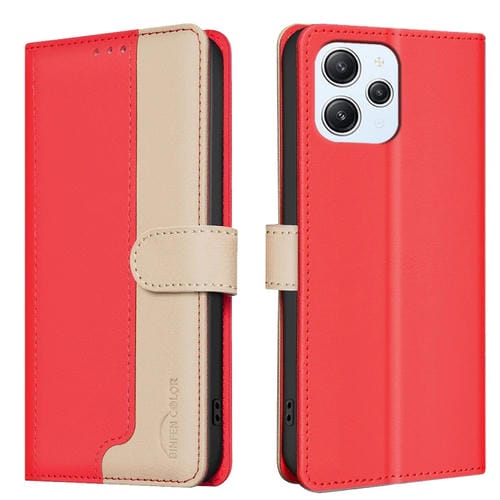 Para Xiaomi Redmi 12 4G Funda de Teléfono de Cuero Antirrobo Rfid a Juego de Colores (Rojo)