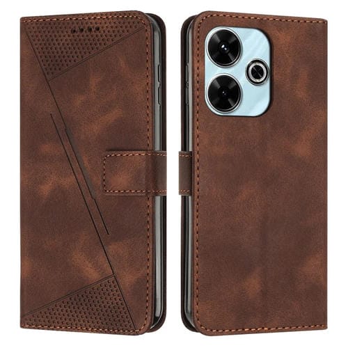 Para Xiaomi Redmi 13 4G Dream Triangle Funda de Cuero para Teléfono con Cordón (Marrón)