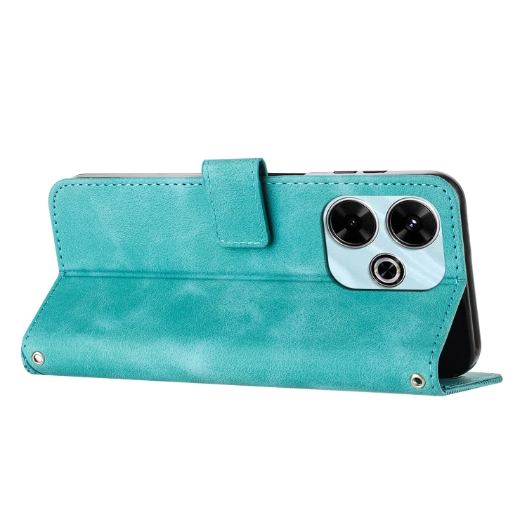 Para Xiaomi Redmi 13 4G Dream Triangle Funda de Cuero para Teléfono con Cordón (Verde)