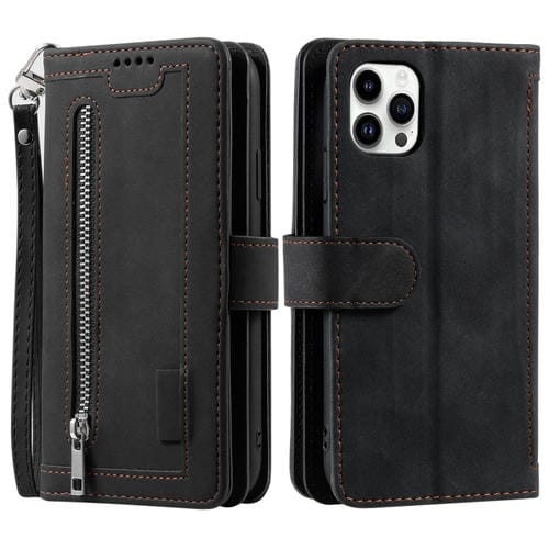 Para Xiaomi Redmi 13 4G Funda de Cuero para Teléfono con Bolsa con Cremallera y Nueve Tarjetas con Cordón (Negro)