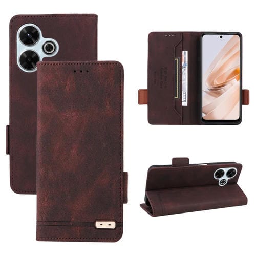 Para Xiaomi Redmi 13 4G Funda de Cuero para Teléfono con Cierre Magnético Global (Marrón)