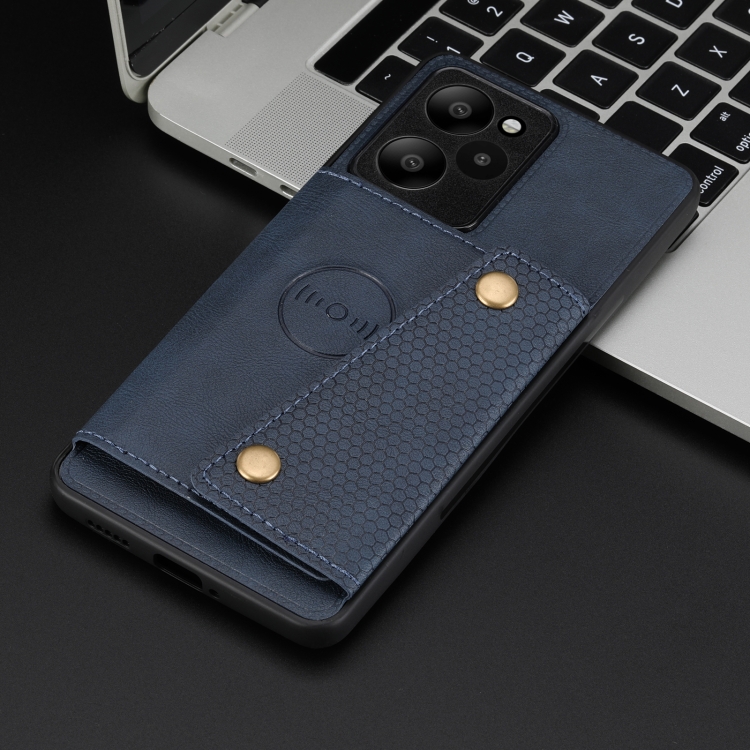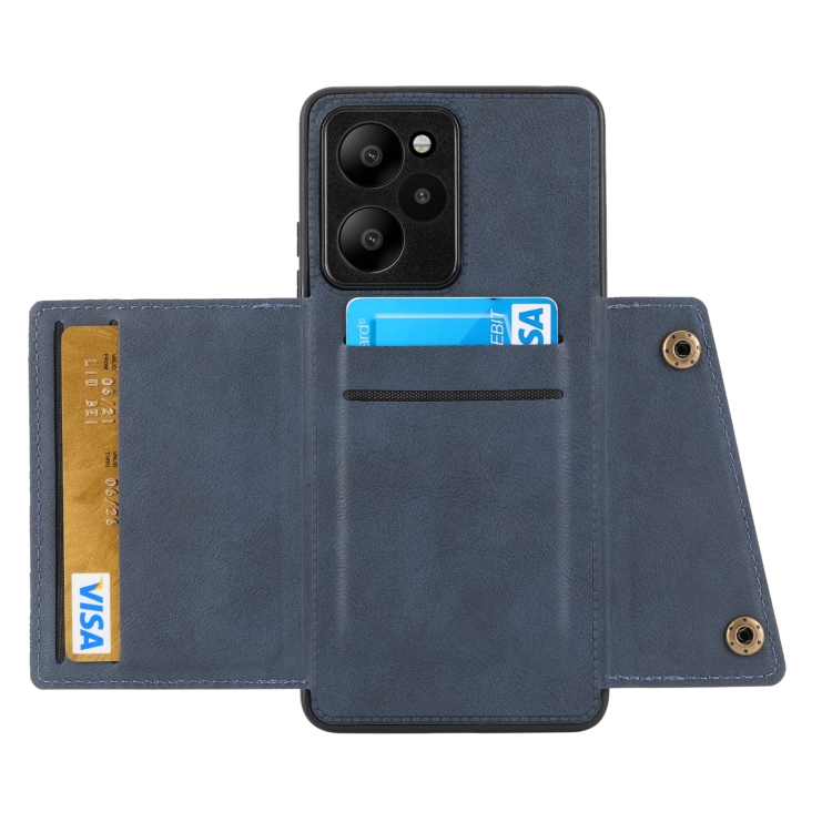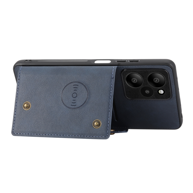 Para Xiaomi Redmi 13 4G Global Caja Magnética para Teléfono con Ranuras para Tarjetas con Doble Hebilla (Azul)
