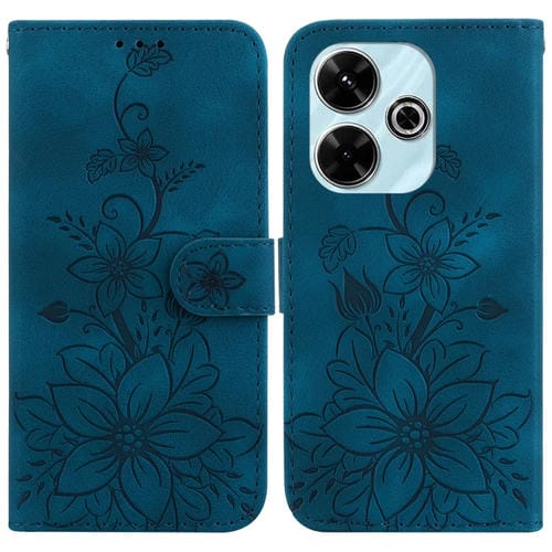 Para Xiaomi Redmi 13 4G Lily Funda de Cuero para Teléfono En Relieve (Azul Oscuro)